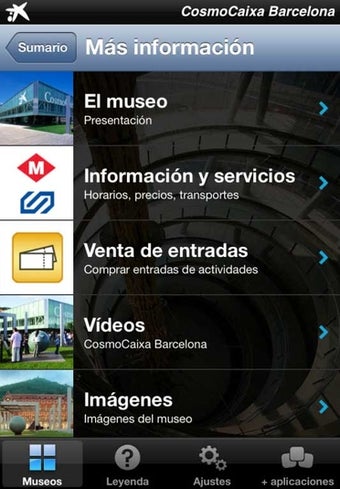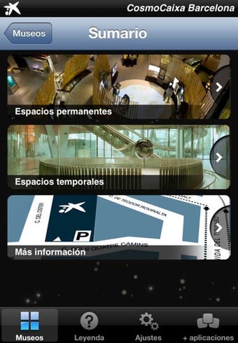 Por otro lado, en CosmoCaixa encontrarás datos del museo propiamente, aunque en el momento de probar la aplicación ésta no se cargó correctamente.
